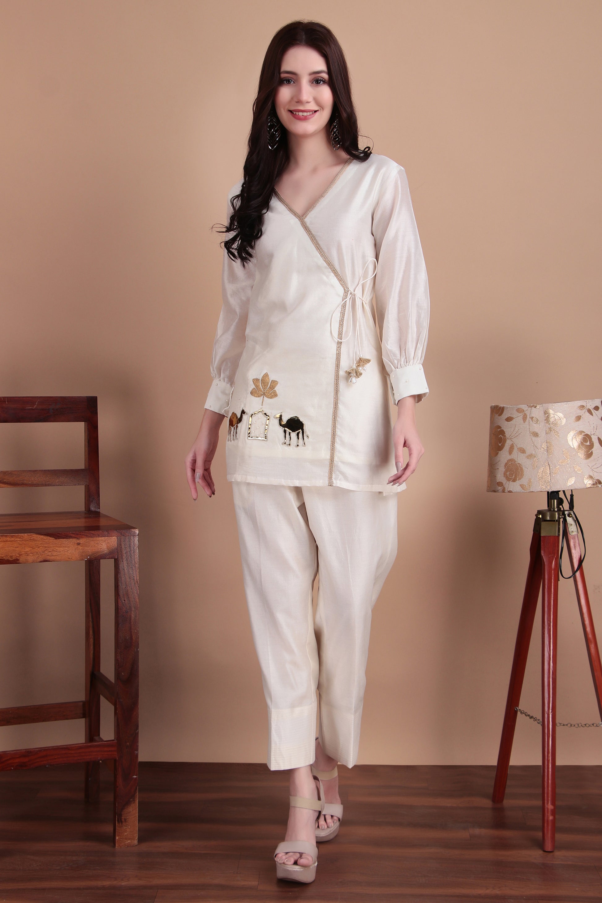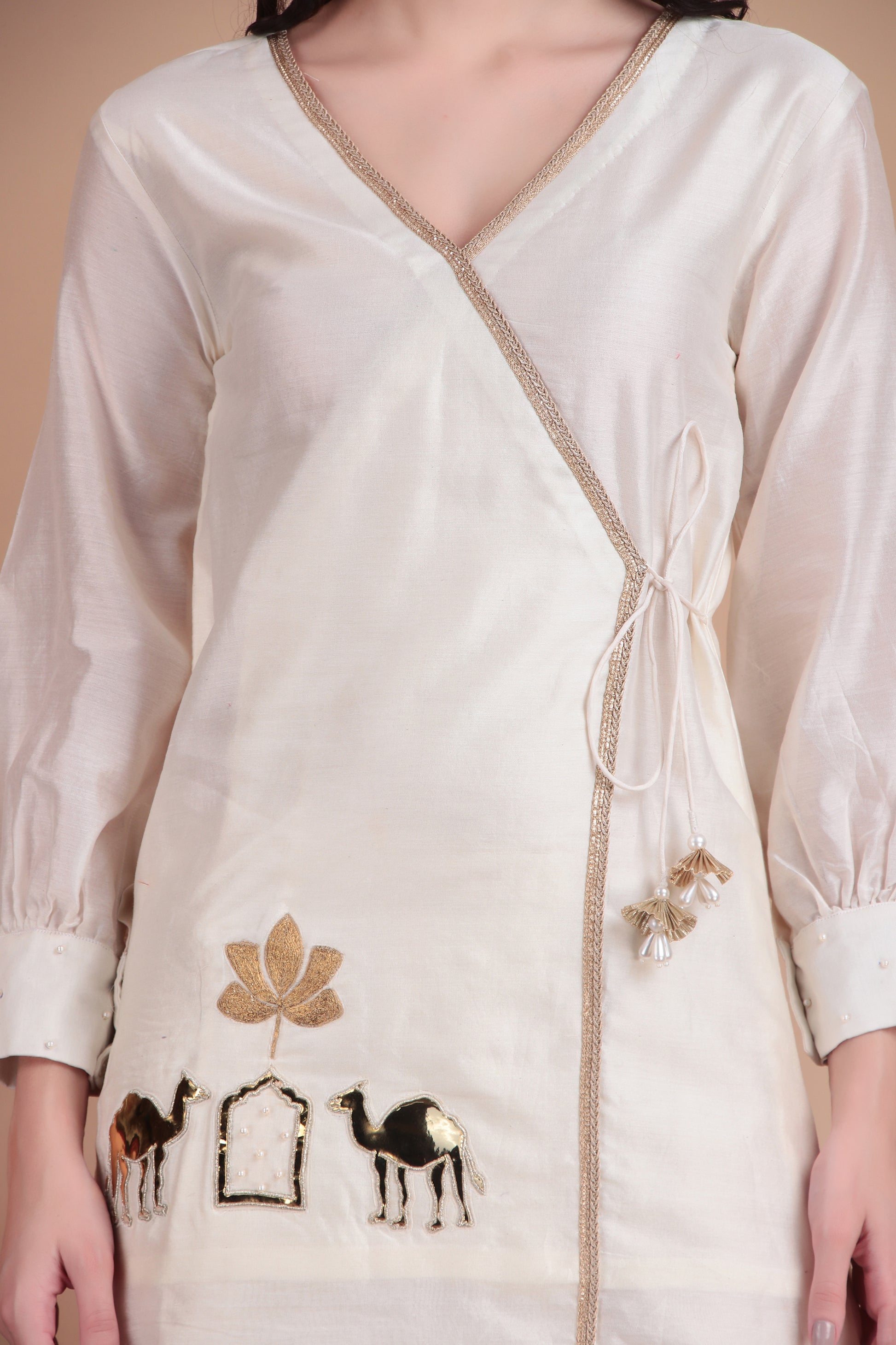 Premium chanderi cotton silk fabric embellished with golden pita machine work .