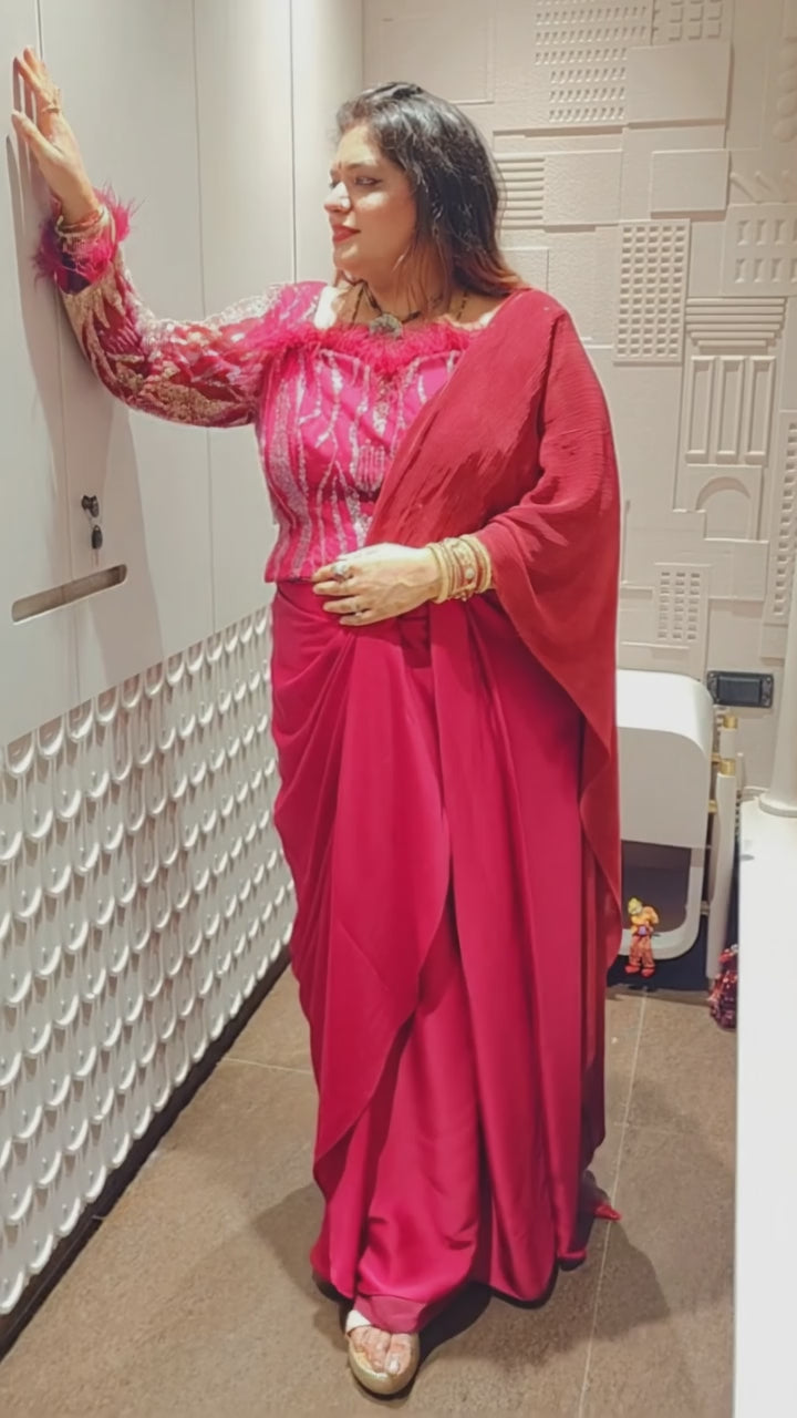 Maroon DRAPE saree embellished with work